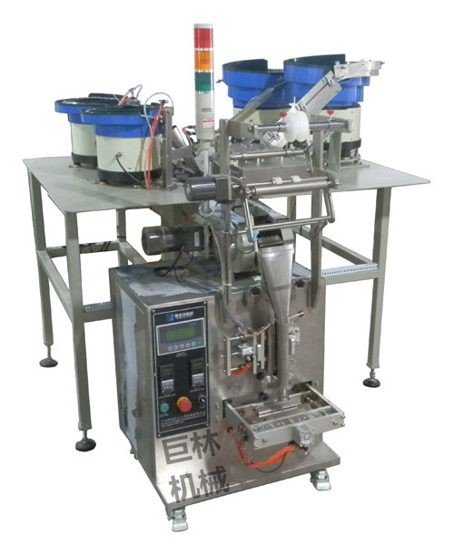功能概述   该机采用先进的PLC+光电系统+中/英文操作屏幕,可自动完成数数,制袋,充填,封合,计数,打码等工序。该机为组合式包装设备,一部分为数数充填部分,可根据客户具体要求装配有1到多个震动下料盘,可以搭配性地使用其中的一个,两个,三个……;另一部分为包装机器,自动完成包装工作。