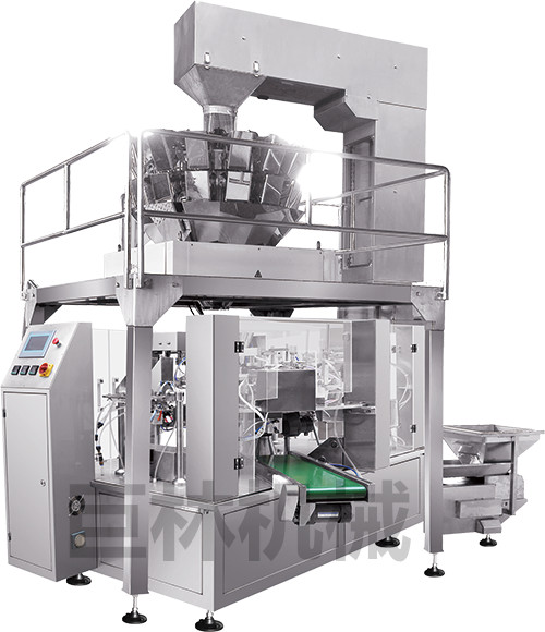 八工位:1、上袋 2、打印生产日期 3、开袋 4、下料 5、下料 6、捅料或振动7、热封 8、整形及输出