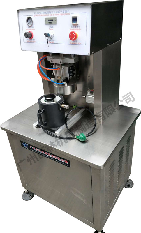 SC-ZKXG10B型三(四)旋盖玻璃瓶半自动真空旋盖机是我司集多年生产经验自行研制而成,属国内独创,它采用真空泵抽真空的方式,可获得很高的真空度,旋盖扭力及真空度均可按需设定,独特的设计使它可兼容多种不同形状、尺寸的瓶子旋盖,兼容性强,且调整方便。主要气动和电器元件使用国际知名品牌,确保性能稳定可靠。广泛适用于食品、罐头、饮料、调味品、保健品等行业中三(四)旋马口铁盖玻璃瓶的真空旋盖。